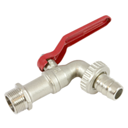 Robuuste herbruikbare messing vernikkelde vatkraan met 3/4 inch aansluiting voorzien van kogelafsluiter voor toepassingen in stalen vaten. Aan de andere zijde voorzien van een 25mm gerilde tule die als slangaansluiting gebruikt kan worden.
